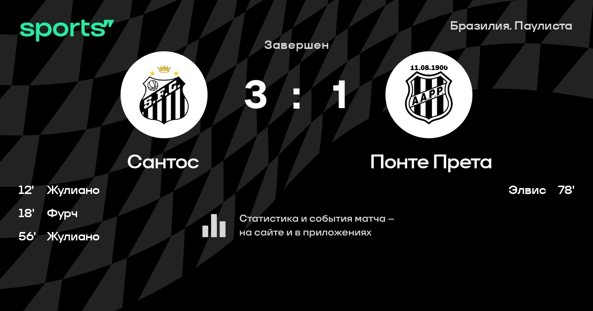 Сантос – Понте Прета: Понте Прета не проигрывает в 7 из 9 последних матчей против этого соперника