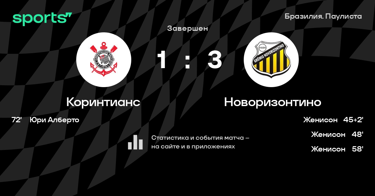 Гол Юри Алберто и хет-трик Женисона: смотрите видеообзор матча «Коринтианс» – «Новоризонтино»