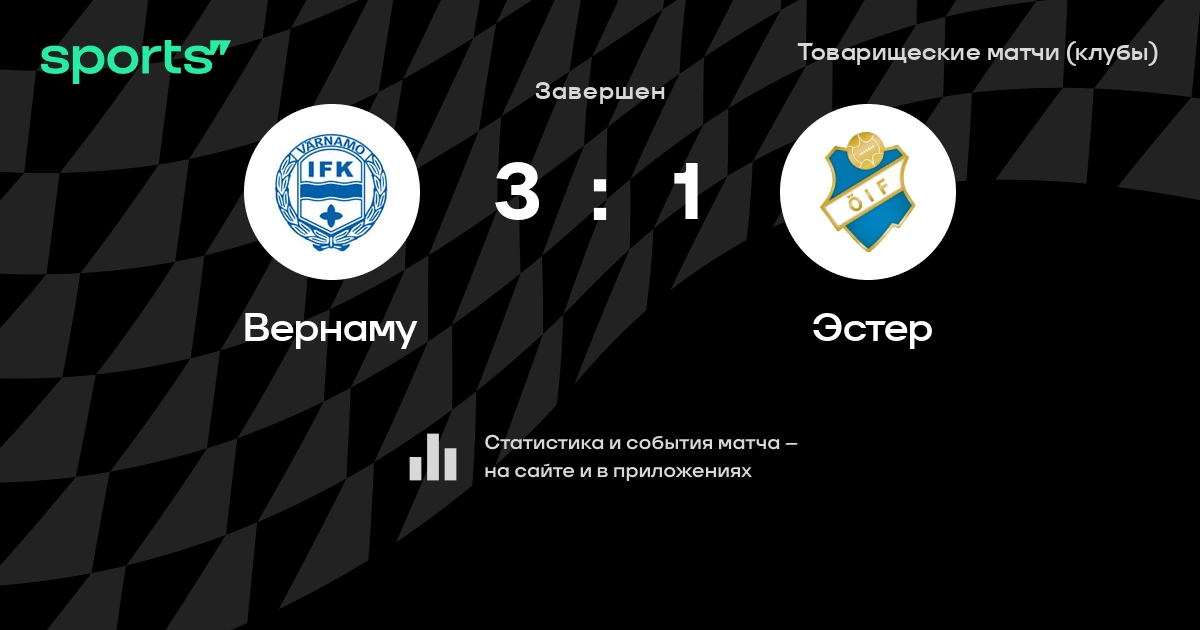 Вернаму – Эстер: Вернаму не проигрывает в 5 из 7 последних матчей против этого соперника дома