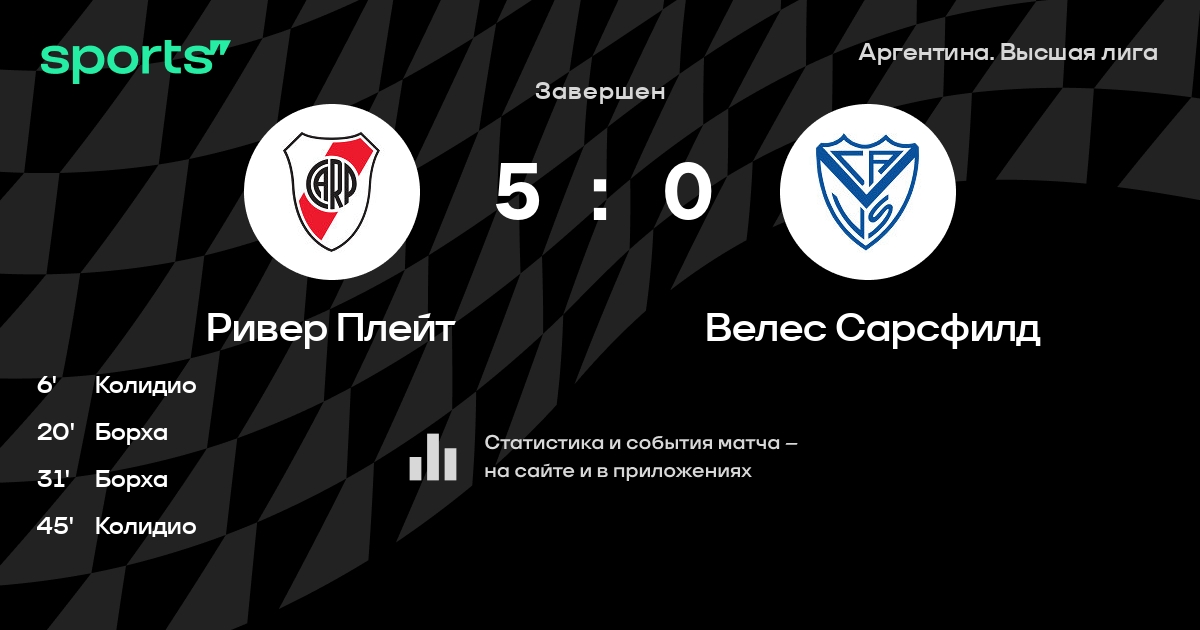 Ривер Плейт – Велес Сарсфилд: Велес Сарсфилд не проигрывает в 6 последних матчах против этого соперника