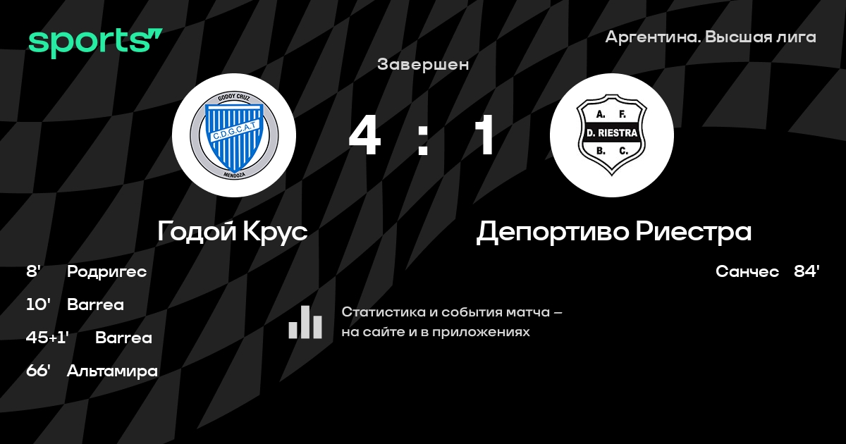 Трансляция Годой Крус - Депортиво Риестра