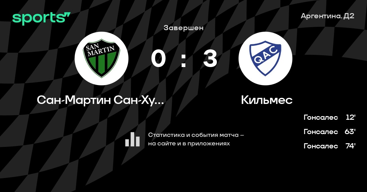 Сан-Мартин Сан-Хуан – Кильмес: Сан-Мартин Сан-Хуан побеждает в 3 последних очных матчах дома