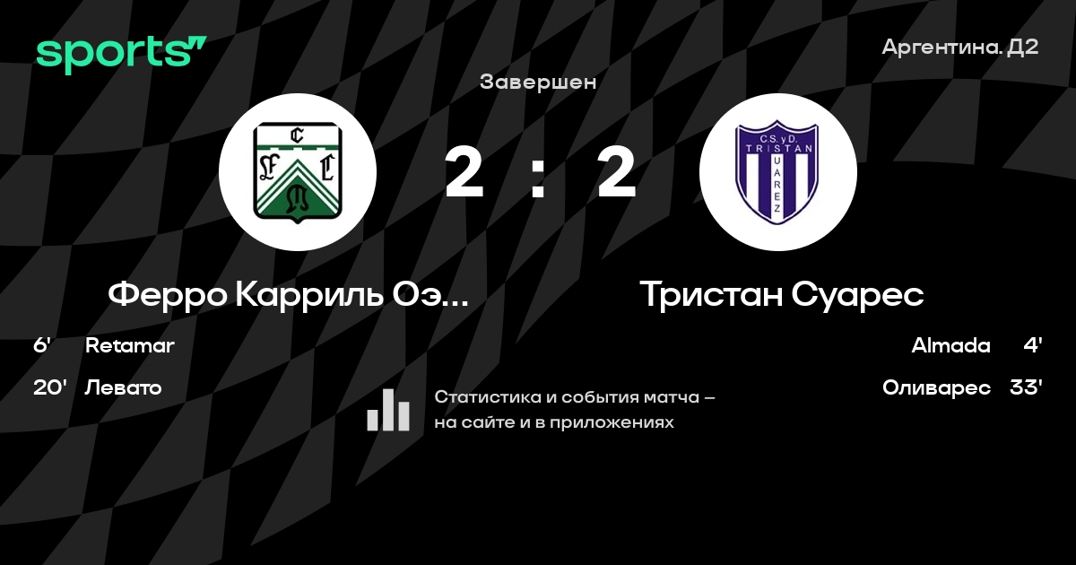 Ферро Карриль Оэсте – Тристан Суарес: коэффициенты