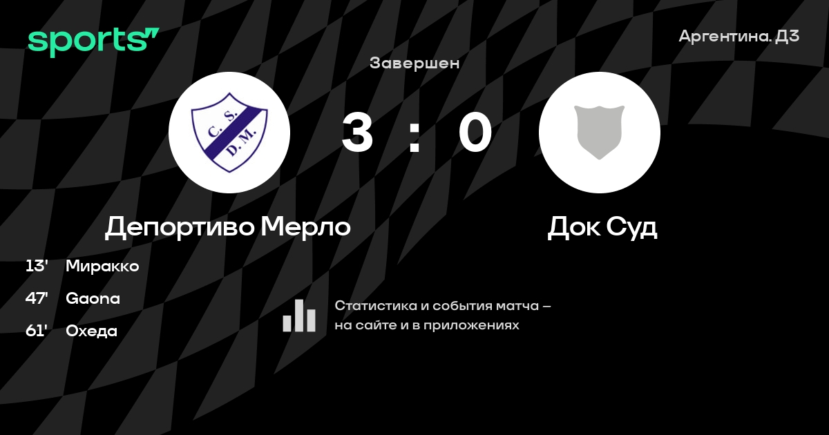 Депортиво Мерло – Док Суд: Док Суд не проигрывает в 6 из 7 последних матчей против этого соперника в гостях