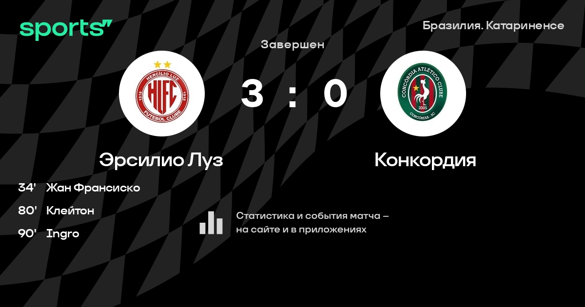 Эрсилио Луз – Конкордия: Эрсилио Луз не пропускает в 5 последних матчах против этого соперника