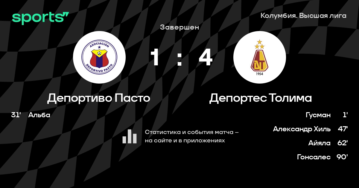 Депортиво Пасто – Депортес Толима: Депортес Толима не проигрывает в 5 из 7 последних матчей против этого соперника в гостях