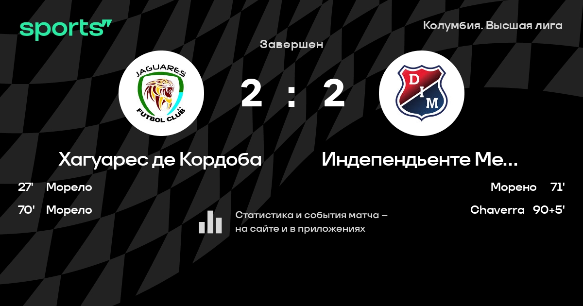 Хагуарес де Кордоба – Индепендьенте Медельин: коэффициенты