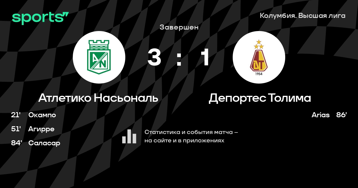 Трансляция Атлетико Насьональ - Депортес Толима