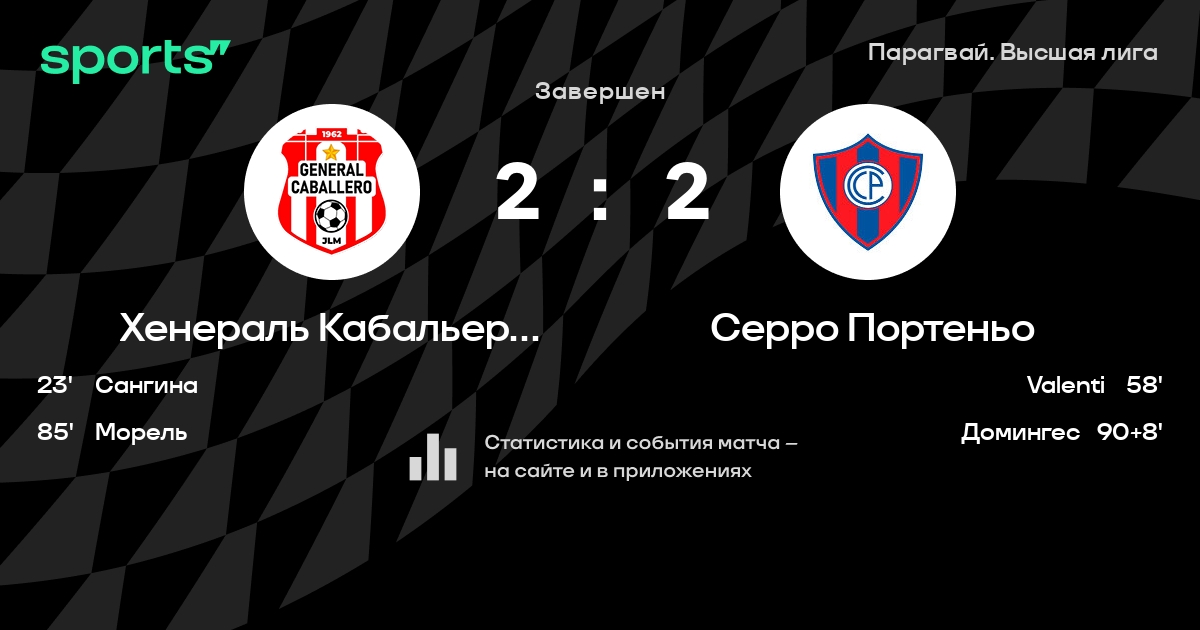 Хенераль Кабальеро ХЛМ – Серро Портеньо: Серро Портеньо не проигрывает в 7 из 8 последних матчей против этого соперника