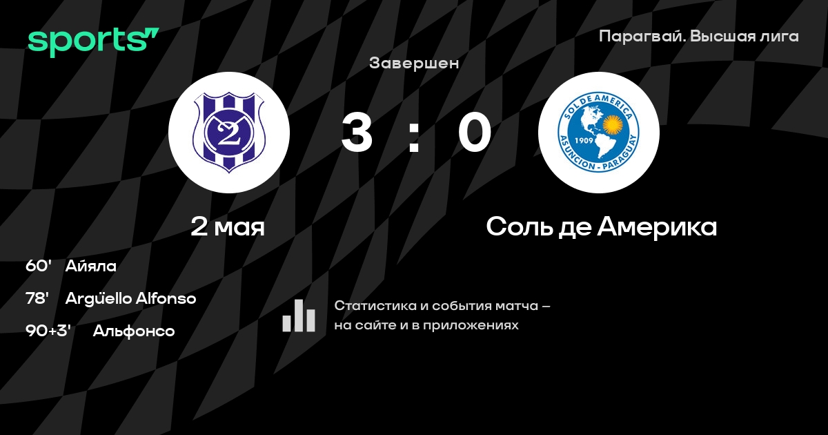 2 мая – Соль де Америка: 2 мая побеждает в 3 последних очных матчах в турнире «Примера»