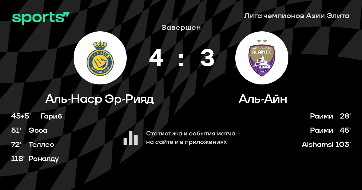 Аль-Наср Эр-Рияд – Аль-Айн: Аль-Айн забивает в 3 последних матчах против этого соперника