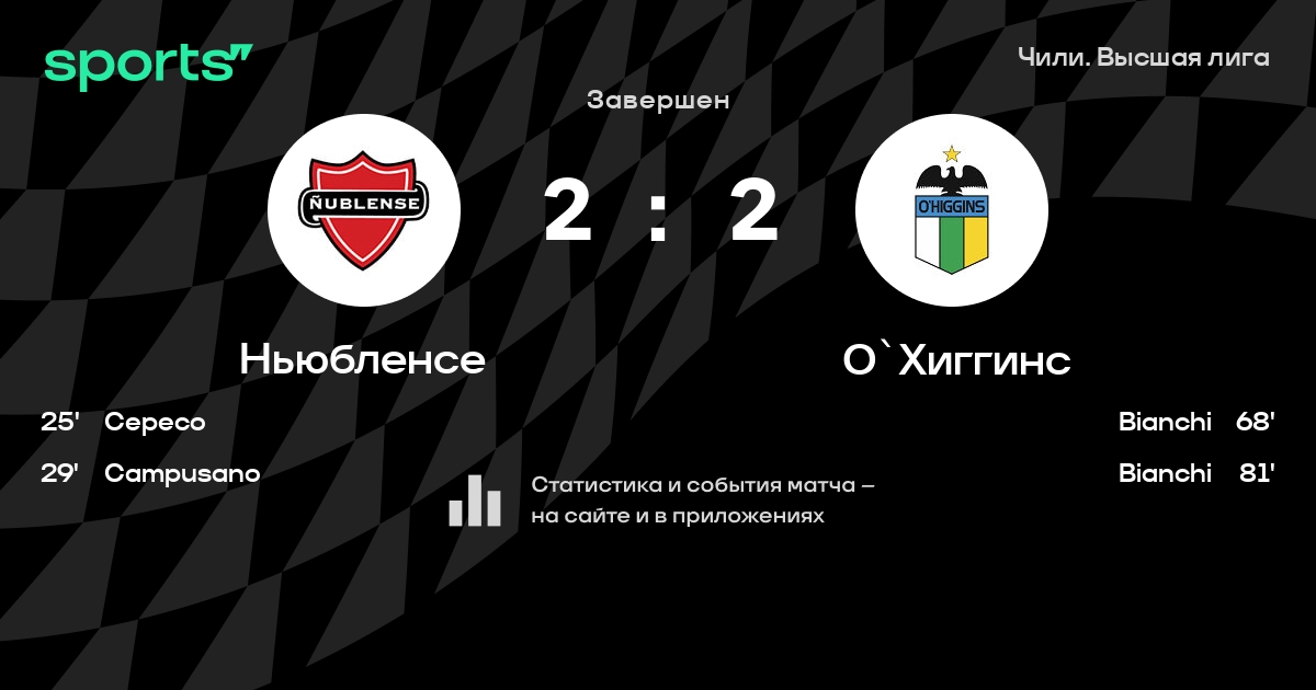 Ньюбленсе – О`Хиггинс: О`Хиггинс забивает в 5 последних матчах против этого соперника