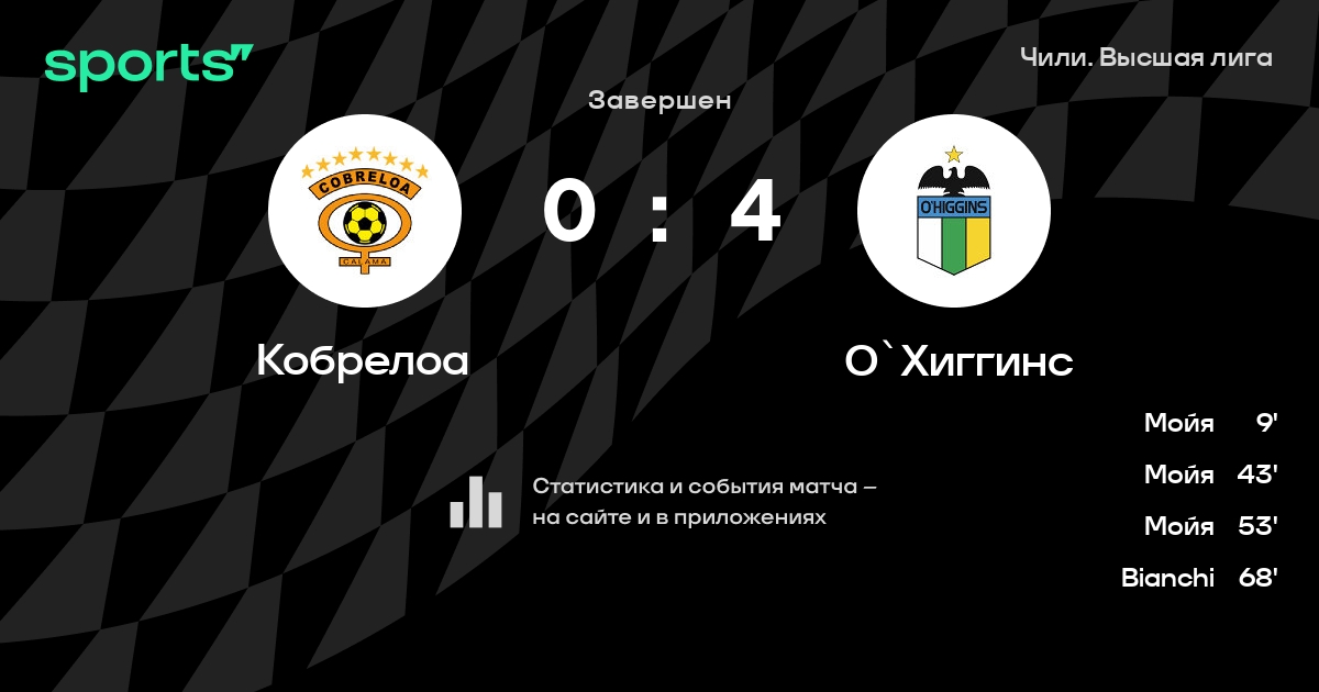 Кобрелоа – О`Хиггинс: О`Хиггинс не проигрывает в 7 из 9 последних матчей против этого соперника