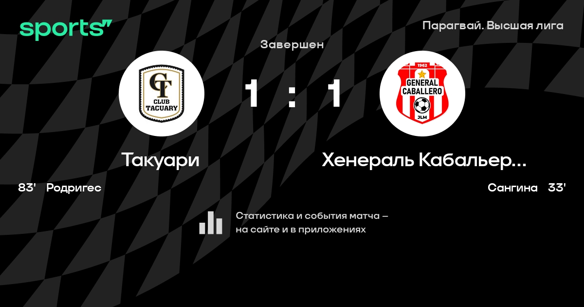 Такуари – Хенераль Кабальеро ХЛМ: Хенераль Кабальеро ХЛМ не проигрывает в 5 из 7 последних матчей против этого соперника в турнире «Примера»