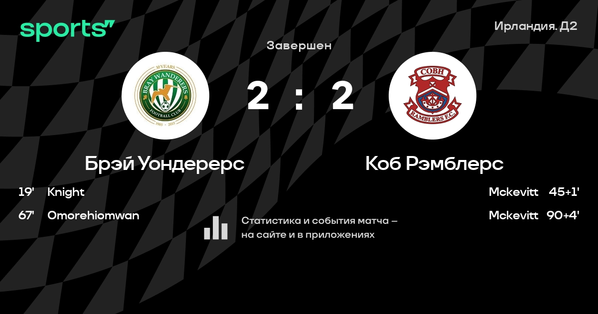 Брэй Уондерерс – Коб Рэмблерс: Коб Рэмблерс не проигрывает в 6 из 8 последних матчей против этого соперника