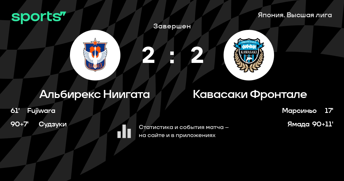 Альбирекс Ниигата – Кавасаки Фронтале: Кавасаки Фронтале не проигрывает в 5 из 7 последних матчей против этого соперника в гостях