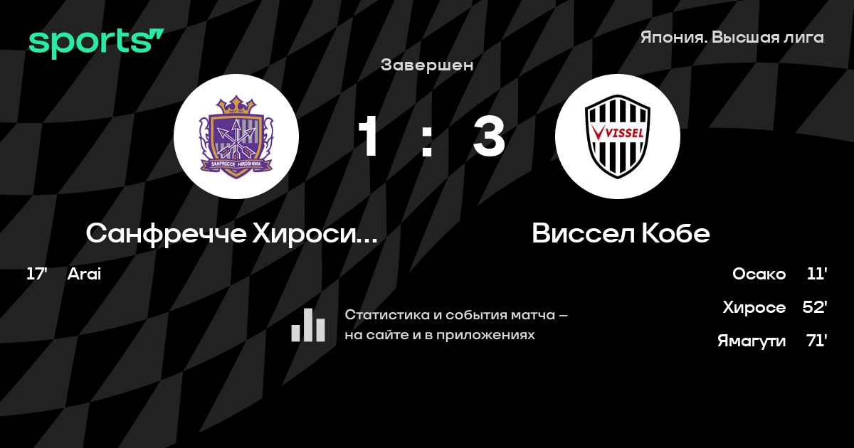 Санфречче Хиросима – Виссел Кобе: Виссел Кобе не проигрывает в 6 из 8 последних матчей против этого соперника в турнире «Джей-лига 1»