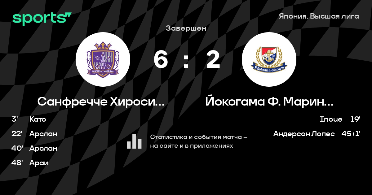 Результат прошлой игры в турнире «Джей-лига 1»: Касима Антлерс – Санфречче Хиросима 2:2. После 30 туров Санфречче Хиросима набирает 56 очков и занимает 2 место в турнире. Лучший бомбардир команды – M. Kato: он забил 9 в 38 матчах. Санфречче Хиросима не проигрывает в 8 последних матчах в рамках турнира «Джей-лига 1». Санфречче Хиросима имеет лучшую разницу мячей в турнире – 25. В 19 последних матчах в турнире «Джей-лига 1» Санфречче Хиросима обязательно забивает. Санфречче Хиросима больше всех забивает в турнире – 55 в 30. В последних 5 играх Санфречче Хиросима забивает 8 голов. В последних 5 играх Санфречче Хиросима пропускает 6 голов.