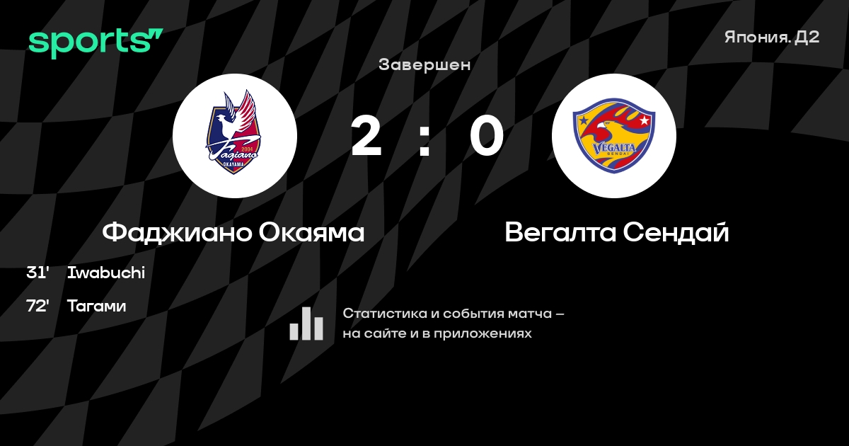 Фаджиано Окаяма – Вегалта Сендай: Фаджиано Окаяма не проигрывает в 5 последних матчах против этого соперника
