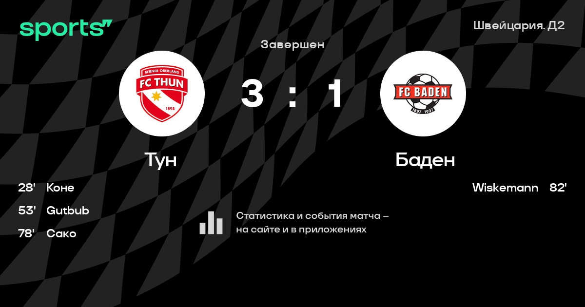 Тун – Баден: Тун не проигрывает в 10 последних матчах против этого соперника