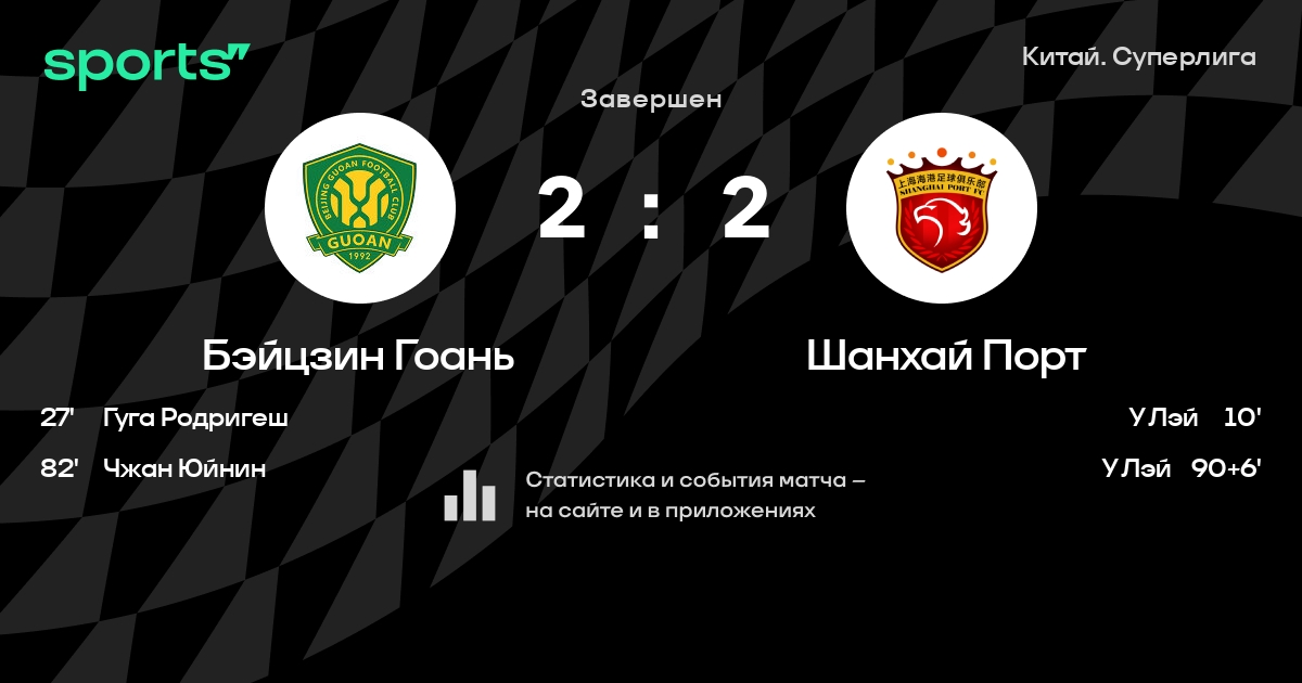 Бэйцзин Гоань – Шанхай Порт: Шанхай Порт забивает в 16 из 18 последних матчей против этого соперника