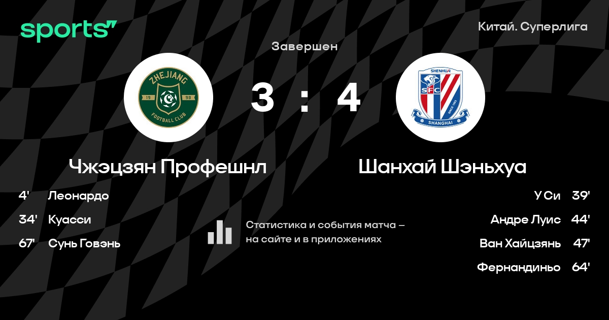 Чемпионат Китая. «Шанхай» Слуцкого обыграл «Чжэцзян» – 4:3, гол хозяев на 99-й отменили с ВАР