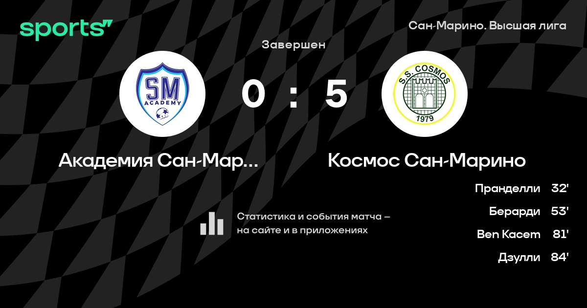 Трансляция Академия Сан-Марино - Космос Сан-Марино