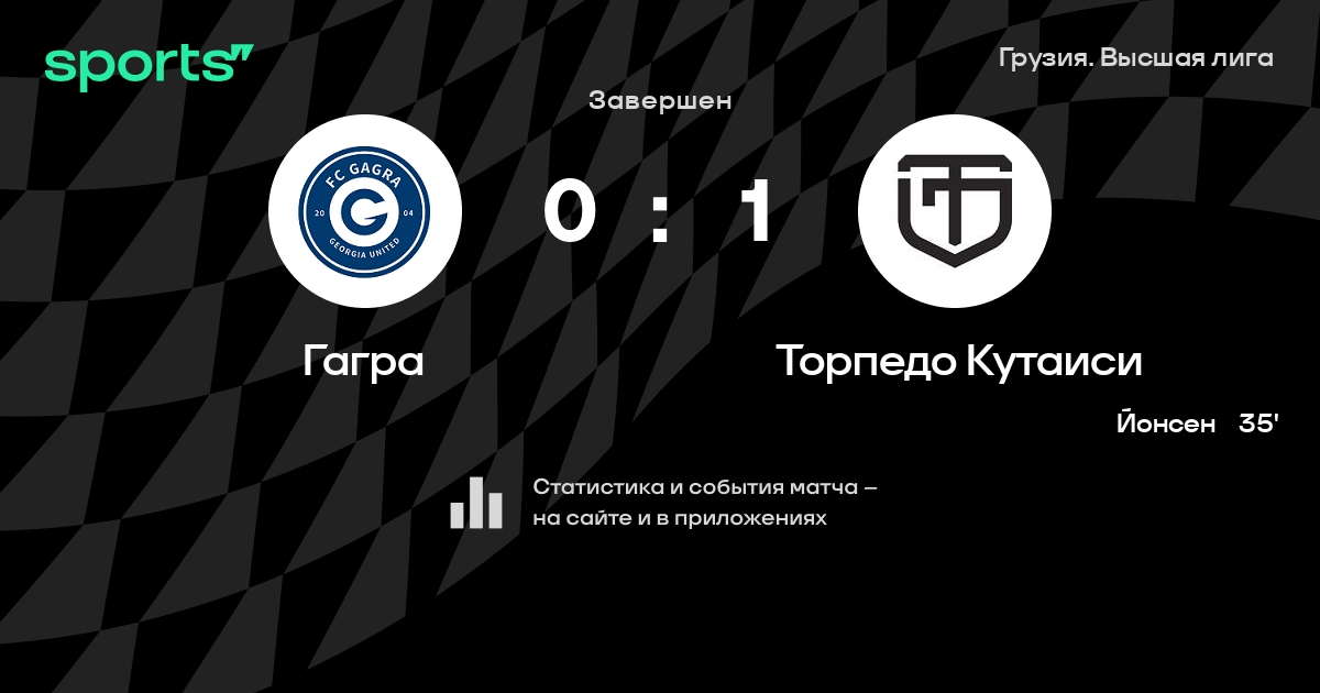 Гагра – Торпедо Кутаиси: Торпедо Кутаиси не проигрывает в 15 из 17 последних матчей против этого соперника