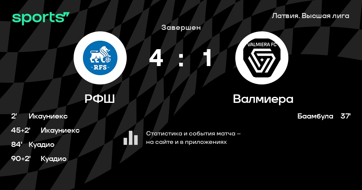 РФШ – Валмиера: Валмиера не пропускает в 3 последних матчах против этого соперника