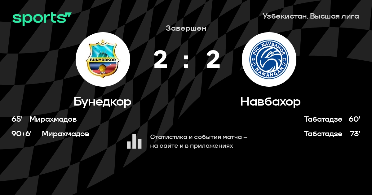 Бунедкор – Навбахор: Навбахор забивает в 4 последних матчах против этого соперника