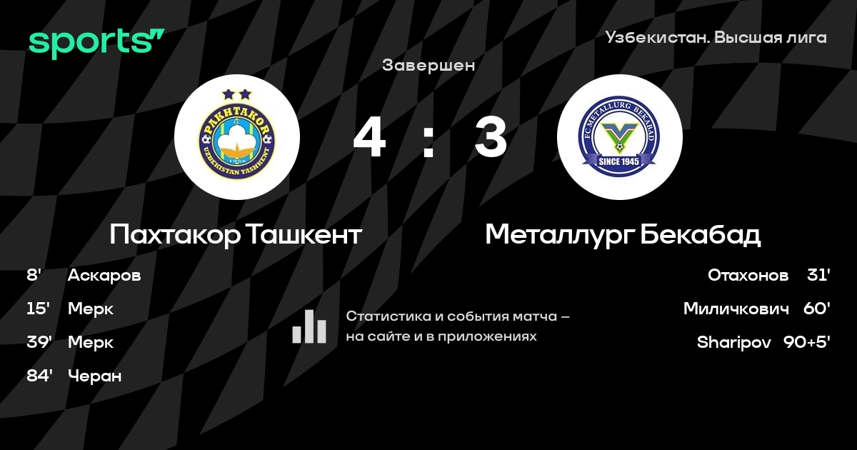 Пахтакор Ташкент – Металлург Бекабад: коэффициенты