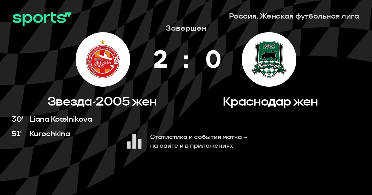 Звезда-2005 жен – Краснодар жен: Звезда-2005 жен забивает в 5 из 7 последних матчей против этого соперника