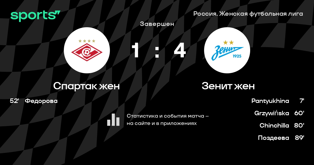 В последних 5 играх Зенит жен забивает в среднем 1.40 гола за игру