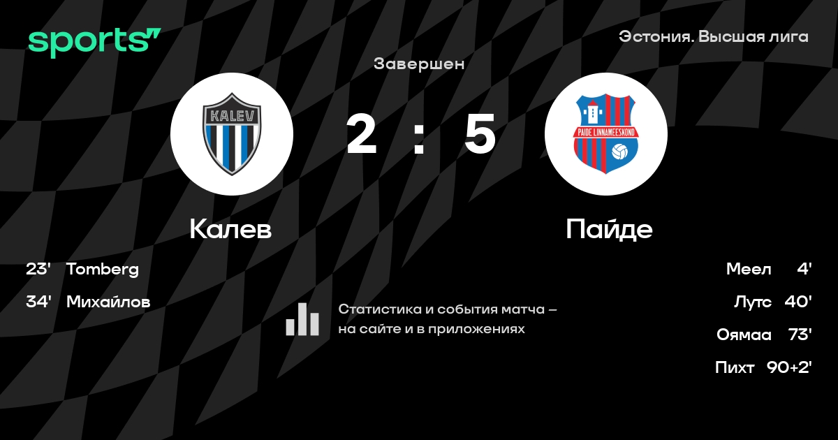 | 3 | Пайде | 36 | 23 | 3 | 10 | 74 | 39 | +35 | 72 | ||
