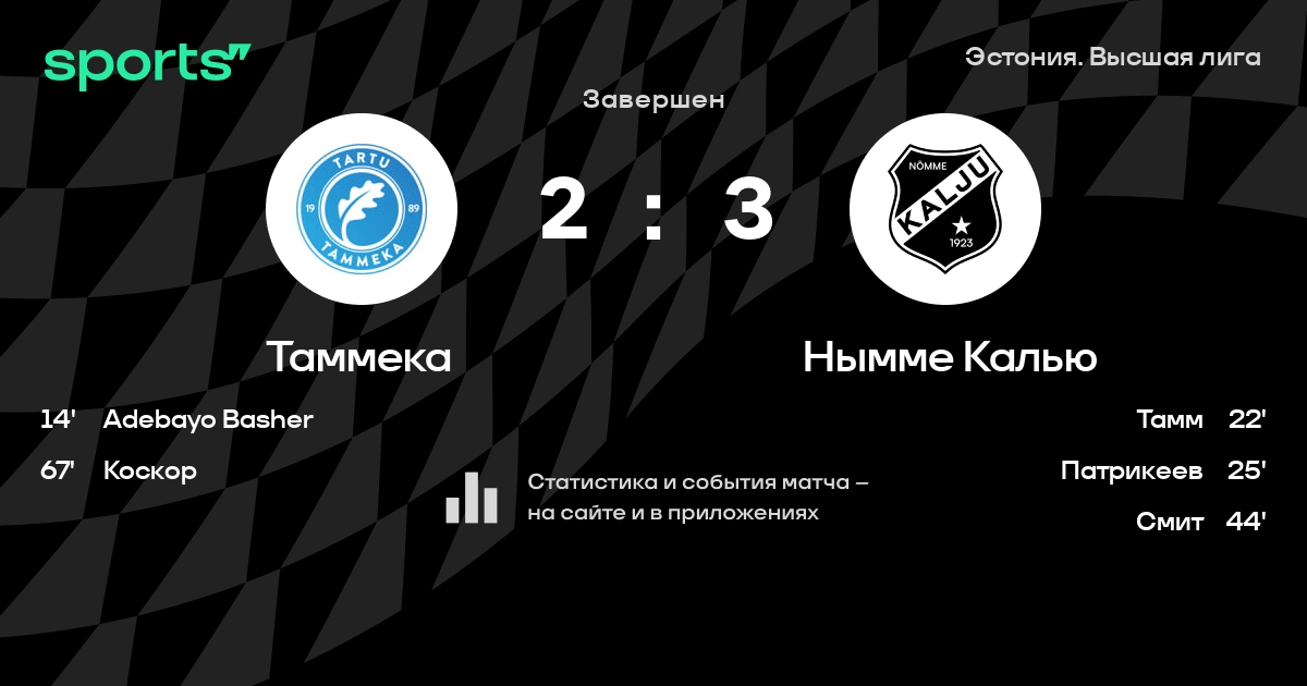 Аланд - Каллас, Таммик, Laurits Õunpuu, Мийл - Herman Pedmanson, Ланг, Веэлма - Коскор, Tanimowo, Ahmed Adebayo BasherЗапасные: Кийдъярв, Sepp, Vister, Müür, Gvineria, Burov, Лаабус, Peedo