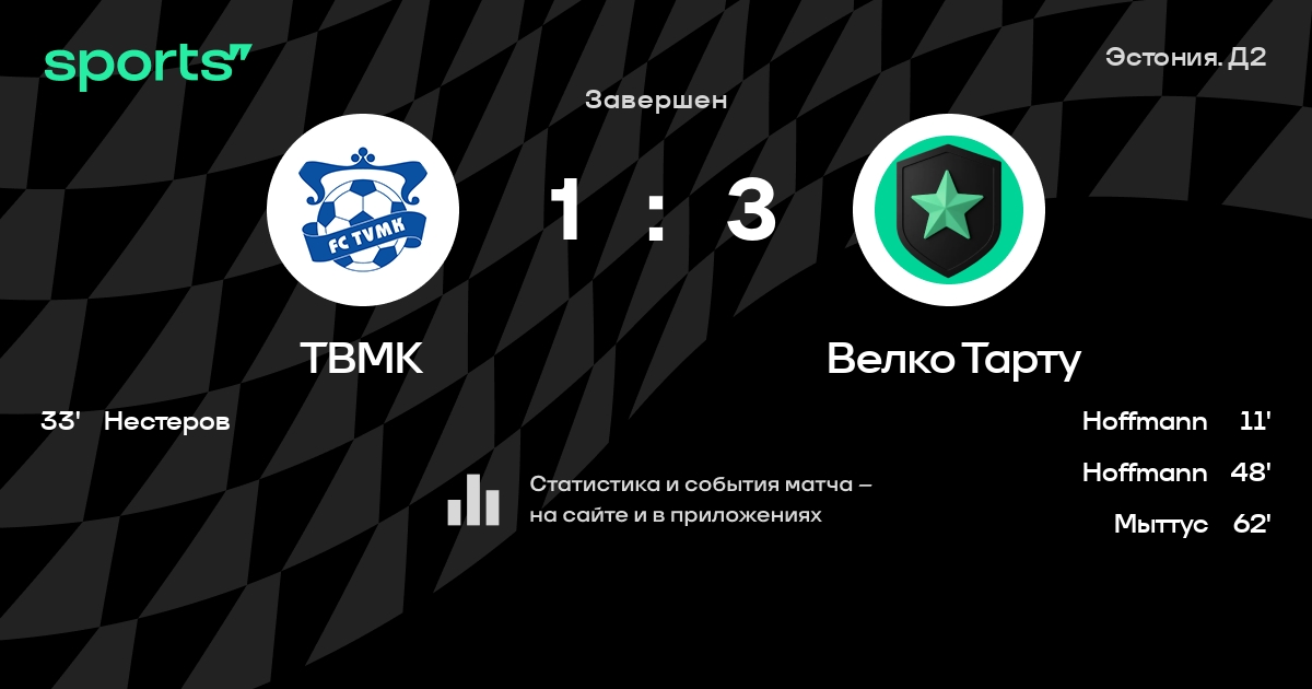 Результат прошлой игры в турнире «Первая лига»: Харью – Велко Тарту 1:1. После 23 туров Велко Тарту набирает 38 очков и занимает 4 место в турнире. Лучший бомбардир команды – M. Roos: он забил 8 в 21 матчах. Велко Тарту не может выиграть в 3 последних матчах в рамках турнира «Первая лига». В 9 последних матчах в турнире «Первая лига» Велко Тарту обязательно забивает. Велко Тарту пропускает в 9 последних матчах в турнире «Первая лига». В последних 5 играх Велко Тарту забивает 9 голов. В последних 5 играх Велко Тарту пропускает 13 голов.