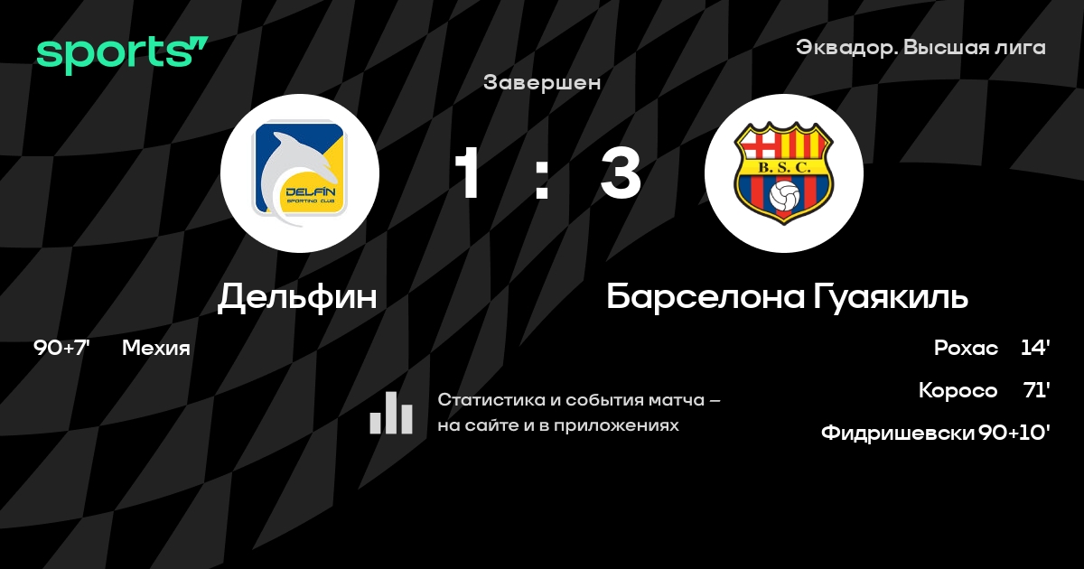 Дельфин – Барселона Гуаякиль: Барселона Гуаякиль забивает в 9 из 11 последних матчей против этого соперника