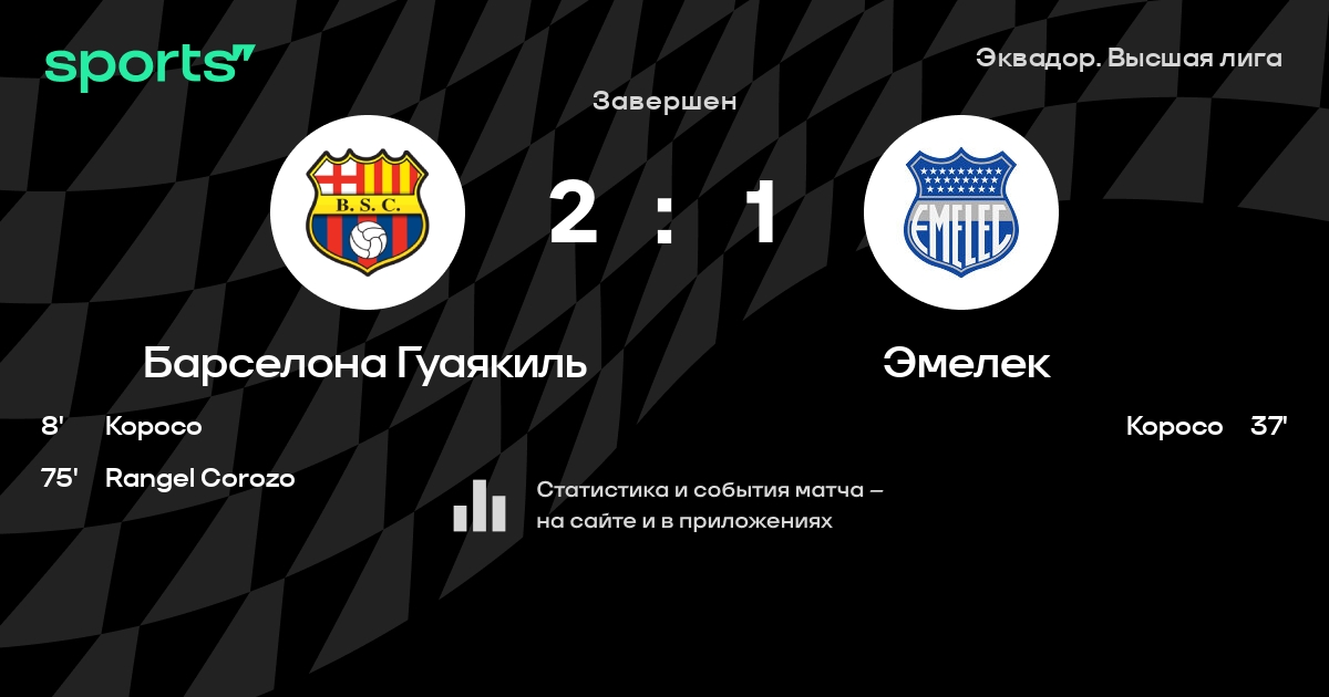 Результат прошлой игры в турнире «Серия A»: Эль-Насьональ – Барселона Гуаякиль 3:0. После 15 туров Барселона Гуаякиль набирает 31 очков и занимает 2 место в турнире. Лучший бомбардир команды – Ханнер Коросо: он забил 9 в 31 матчах. Барселона Гуаякиль не может выиграть в 3 последних матчах в рамках турнира «Серия A». Барселона Гуаякиль имеет лучшую разницу мячей в турнире – 16. В 3 последних матчах в турнире «Серия A» Барселона Гуаякиль обязательно забивает. В последних 5 играх Барселона Гуаякиль забивает 2 голов. В последних 5 играх Барселона Гуаякиль пропускает 8 голов.