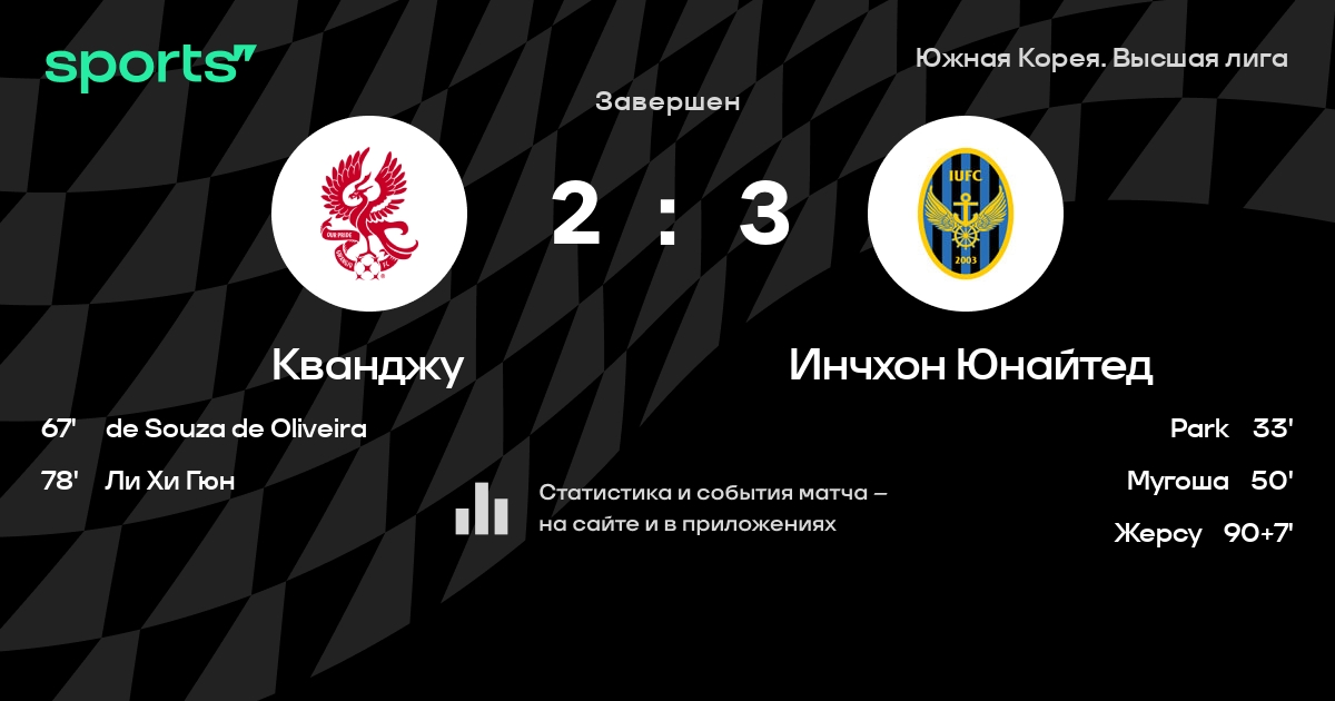 Кванчжу – Инчхон Юнайтед: Инчхон Юнайтед забивает в 3 последних матчах против этого соперника