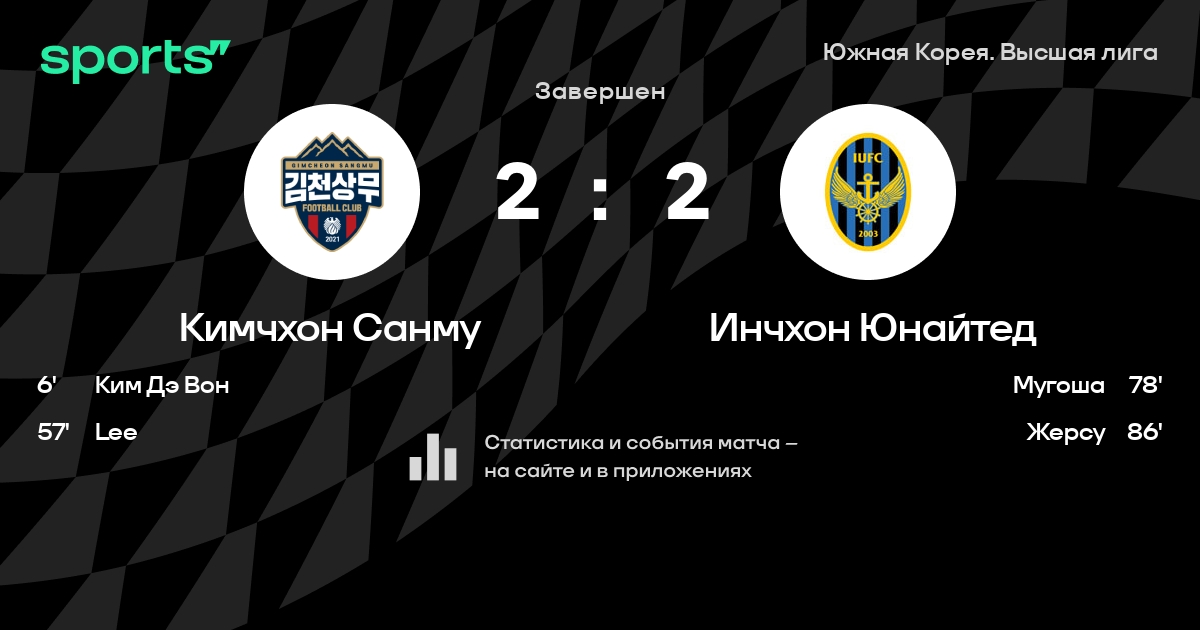 Кимчхон Санму – Инчхон Юнайтед: коэффициенты