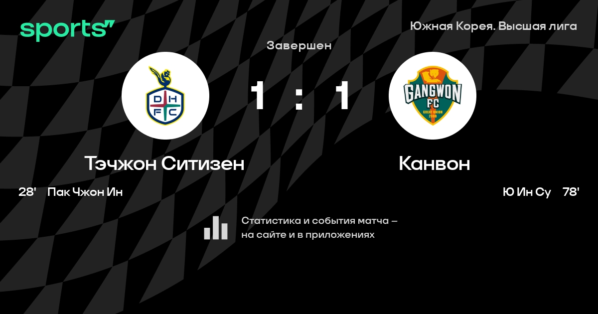 Тэчжон Ситизен – Канвон: Тэчжон Ситизен не проигрывает в 7 из 9 последних матчей против этого соперника