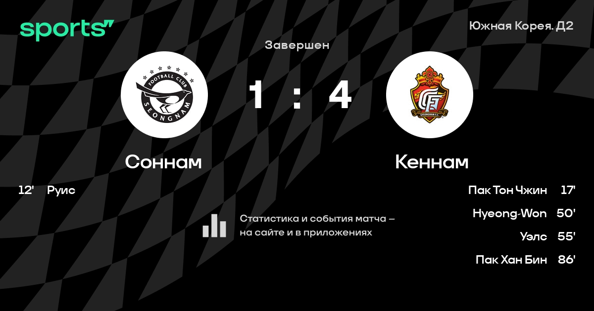 Соннам – Кеннам: Кеннам не проигрывает в 6 последних матчах против этого соперника в гостях