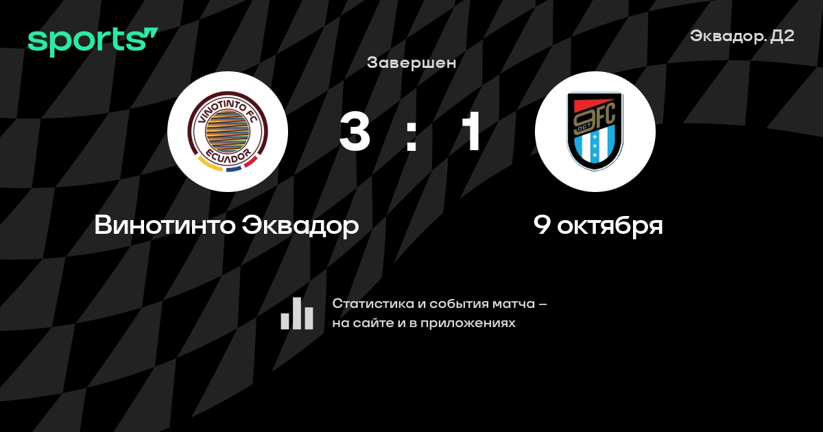 | 1 | Винотинто Эквадор | 36 | 21 | 6 | 9 | 64 | 37 | +27 | 69 | ||