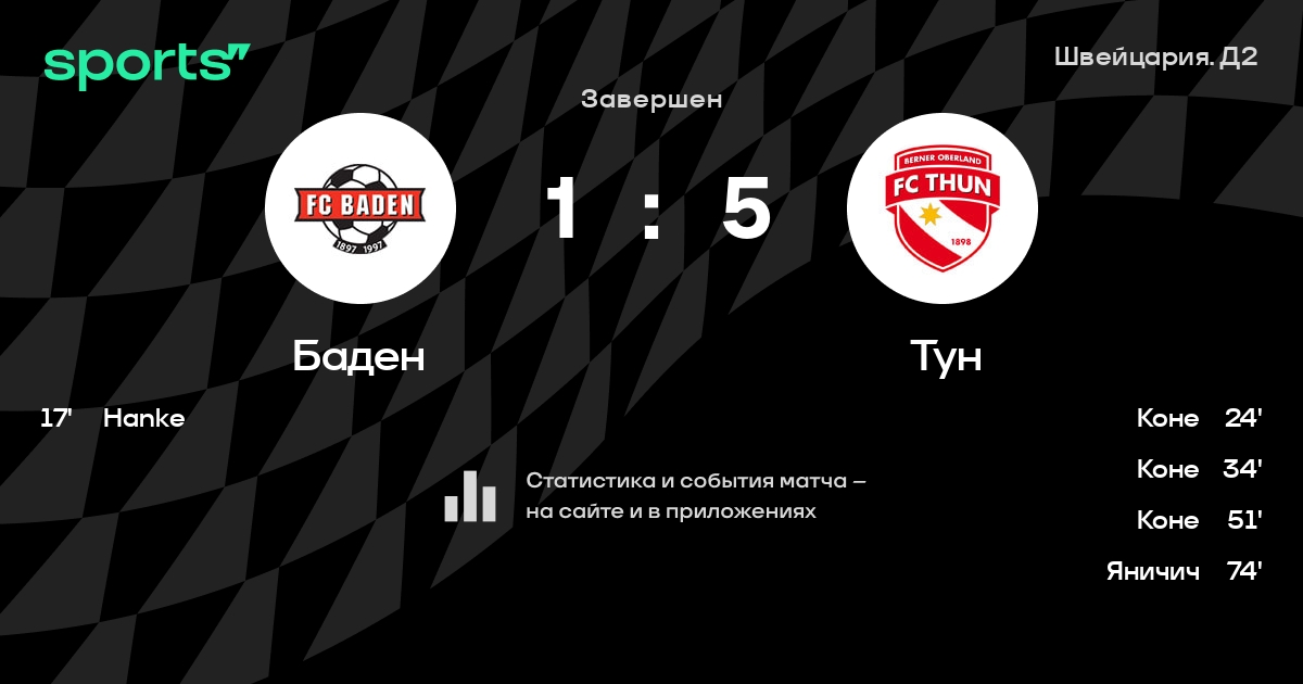 Баден – Тун: Тун побеждает в 3 последних очных матчах