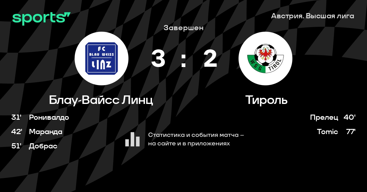 Блау-Вайсс Линц – Тироль: Тироль забивает в 12 последних матчах против этого соперника