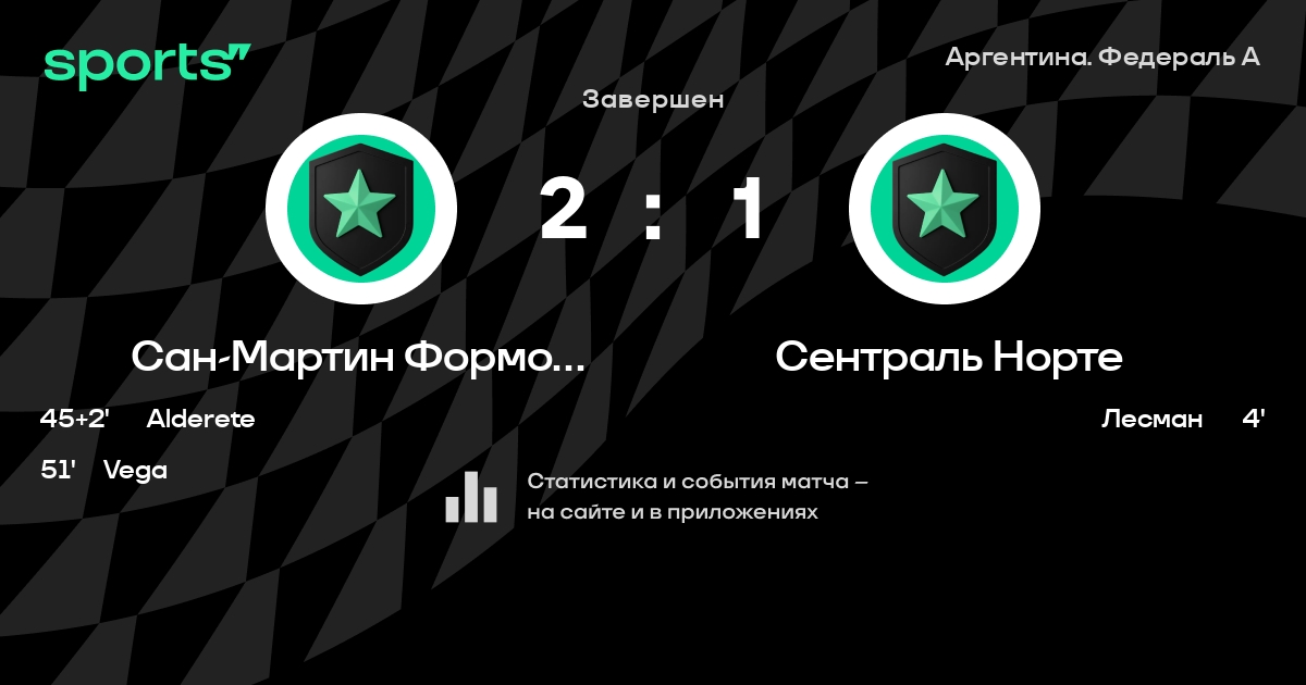 Сан-Мартин Формоса – Сентраль Норте: Сан-Мартин Формоса не проигрывает в 5 из 7 последних матчей против этого соперника