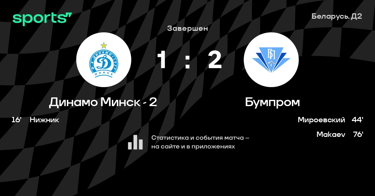 В последних 5 играх Динамо Минск - 2 пропускает в среднем 1.00 гола за игру