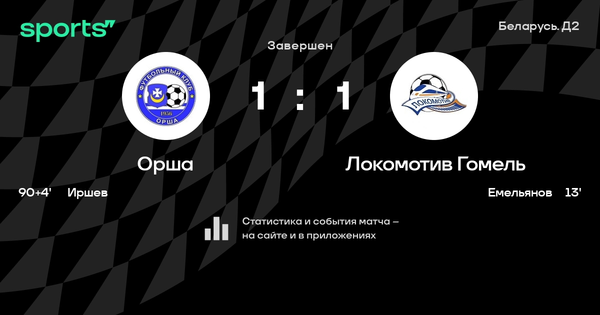 Результат прошлой игры в турнире «Первая лига»: BATE II – Орша 4:0. После 26 туров Орша набирает 36 очков и занимает 10 место в турнире. Лучший бомбардир команды – Дмитрий Тамело: он забил 8 в 25 матчах. В последних 5 играх Орша забивает 10 голов. В последних 5 играх Орша пропускает 7 голов.