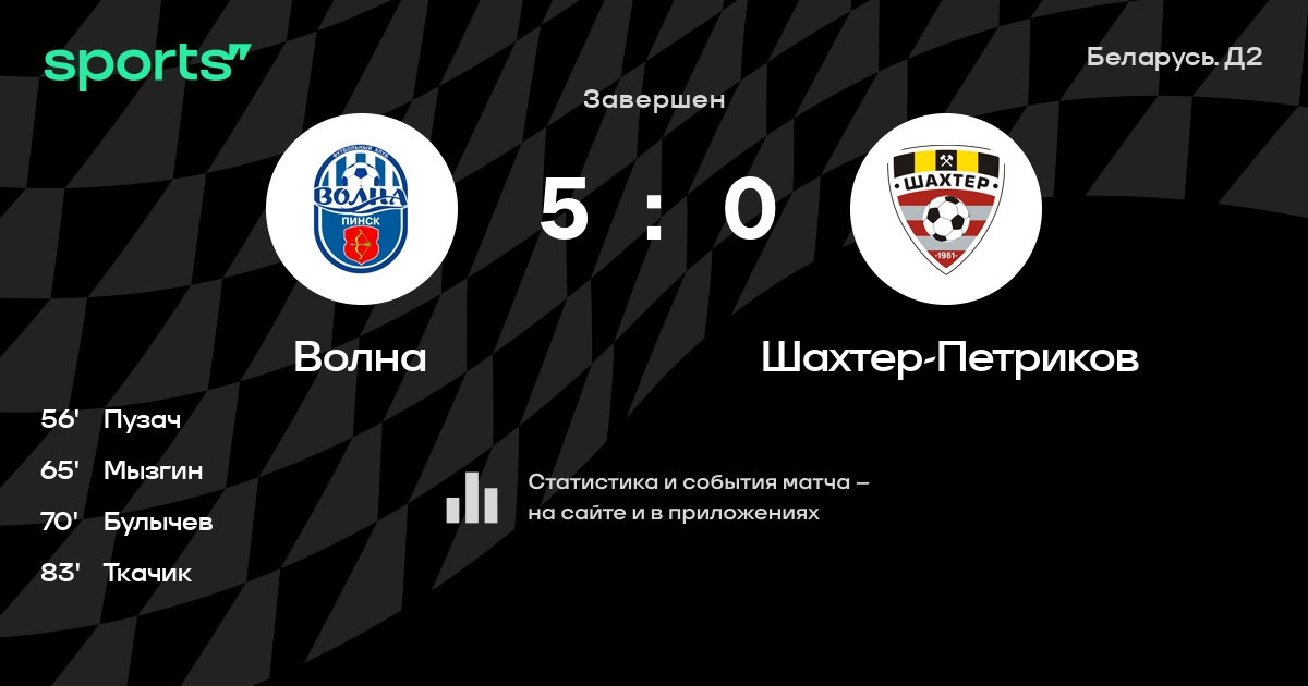 | 5 | Волна | 34 | 21 | 3 | 10 | 70 | 43 | +27 | 66 | ||