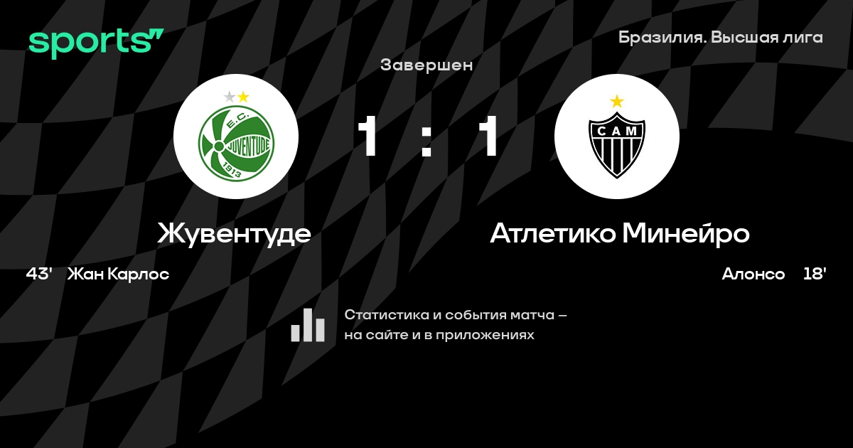 Жувентуде – Атлетико Минейро: Атлетико Минейро побеждает в 10 последних очных матчах